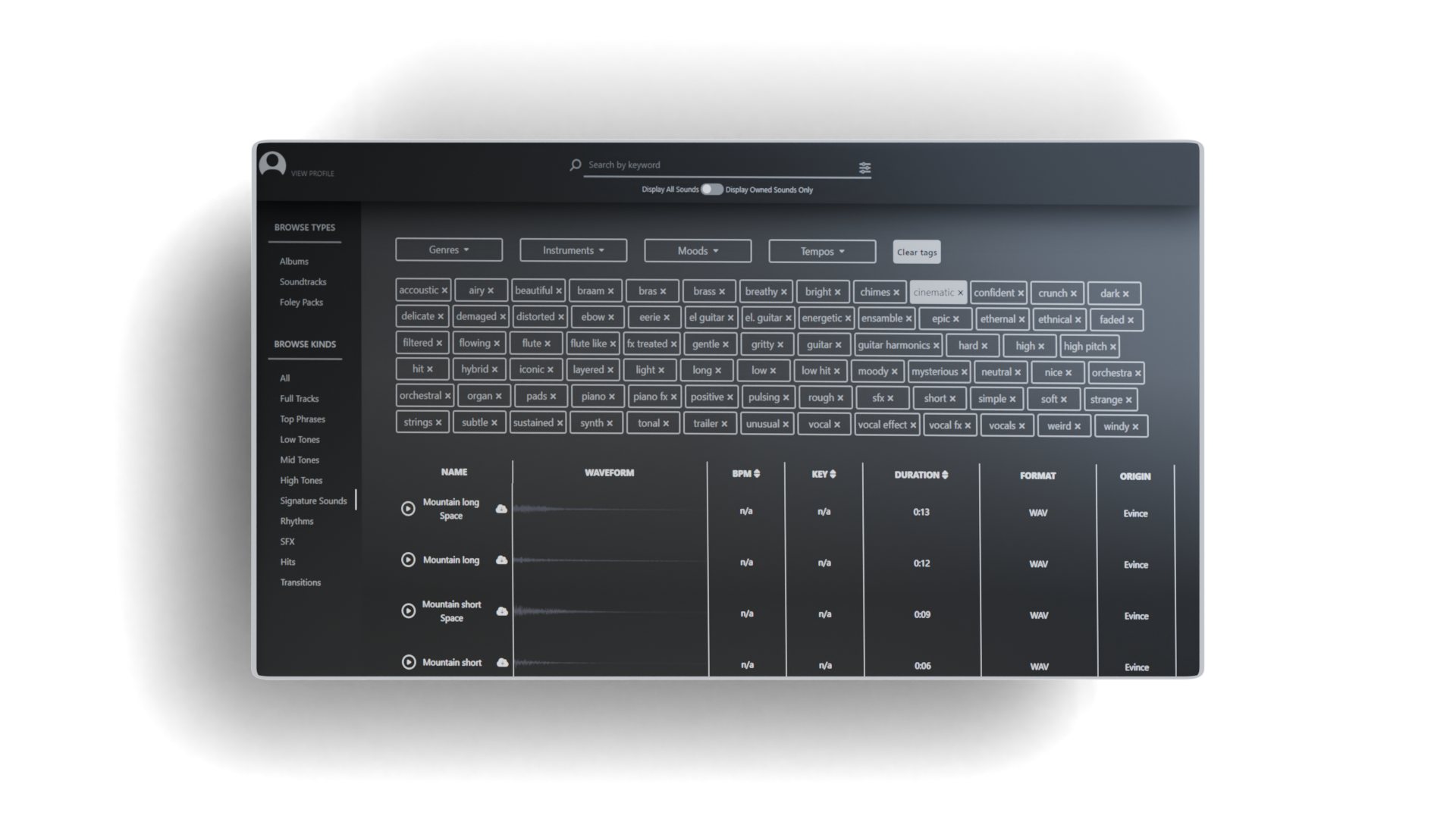 - Emotion-Based Search: Find the perfect sound by searching for emotions, instruments, and sound types (SFX, melody).